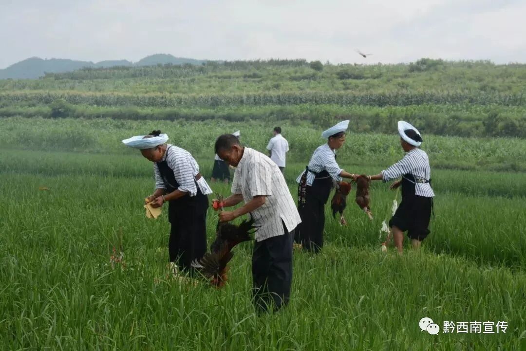 家长要带孩子去,一则可以提高孩子对农业田间管理的知识和兴趣,二则借机给孩子灌输水稻栽培的生产意识,教育孩子从小就热爱生产劳动,珍惜粮食。经济宽裕之家庭,一个连遍田要杀一只公鸡,经济较困难的人家至少也要杀一只公鸡。祭田完毕,回家备上丰盛的饭菜,虔诚地焚香化纸供奉祖先享用,尔后,一家人团圆就餐,企盼来年风调雨顺、五谷丰登、吉祥如意。中午时分,全村要举行祭祀寨神活动,祭寨神不分姓氏,不论亲疏远近,只要是同一村寨,就是一个团结的族群,共同享有一个寨神。寨神布依语叫“墙苏”,在布依族人民的心目中,“墙苏”是全寨人丁、六畜的安全保护神,能保佑全寨人丁繁盛,六畜兴旺。寨神住所多建于寨子上方,能俯瞰全寨的僻静之处,以木石建墙,盖瓦,高约八尺。并书写:“保一方清洁,佑四季平安”。横批为“风调雨顺”的对联。